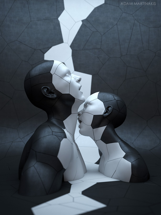 Martikanis Adam é um designer Grego que faz sua arte 3D de uma forma que pelo meno eu nunca vi, ele mistura arte 3d fractal com rostos de pessoas.