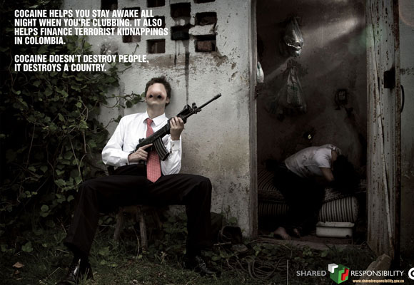 A cocaína ajuda você a ficar acordado a noite toda na balada e também ajuda a financiar o terrorismo na Colômbia.