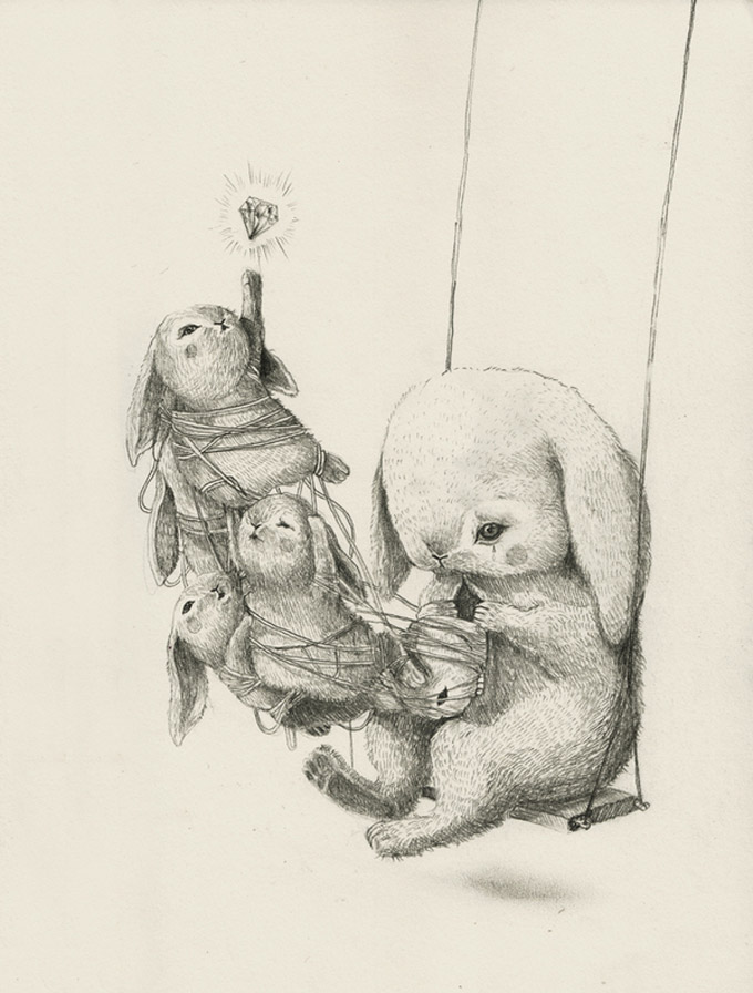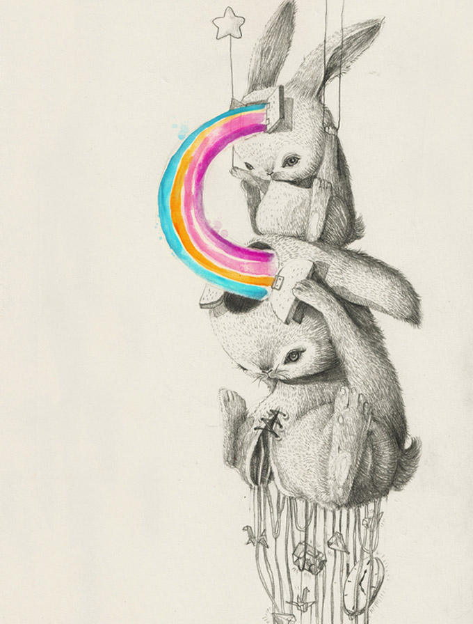 E uma coisa que este artista gosta é de coelhos, mas não vou falar muito, inspire-se com sua arte abaixo!