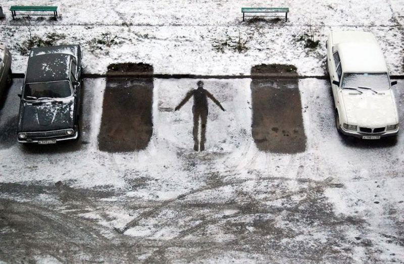 Como exemplo disso eu apresento a arte de Alexey Menschikov este artista das ruas faz sua arte muito pequena e em lugares estratégicos é simples mas muito criativo, veja abaixo.
