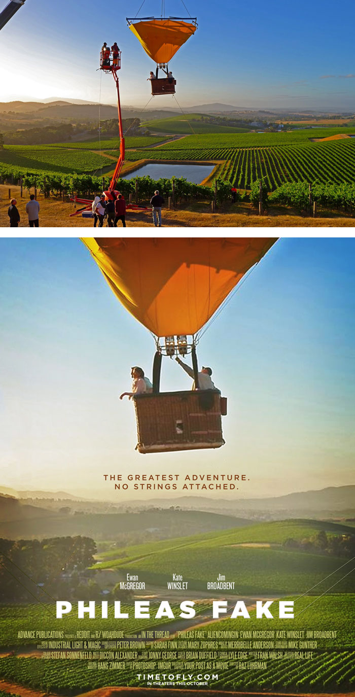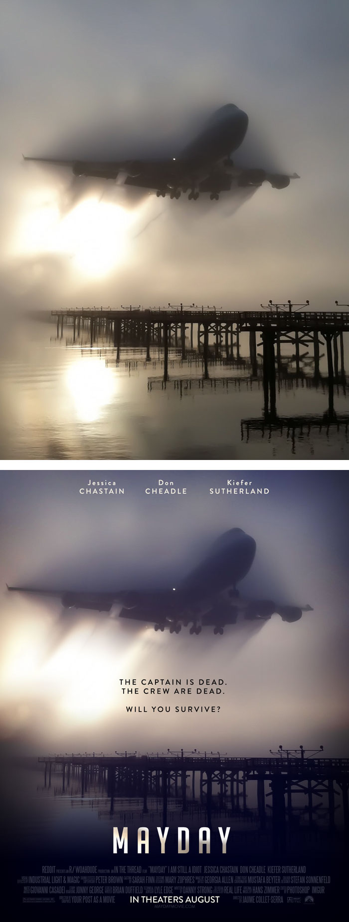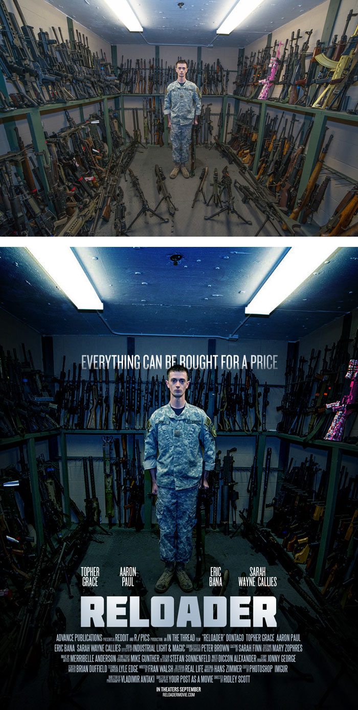 Um rapaz, usuário da rede Reddit, que infelizmente não conseguimos ter acesso ao seu perfil para poder compartilhar, teve a criativa ideia de compartilhar seu talento no Photoshop, criando pôsteres de filmes, esses cartazes de estreia, a partir de fotografias amadoras.