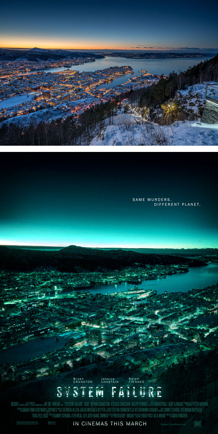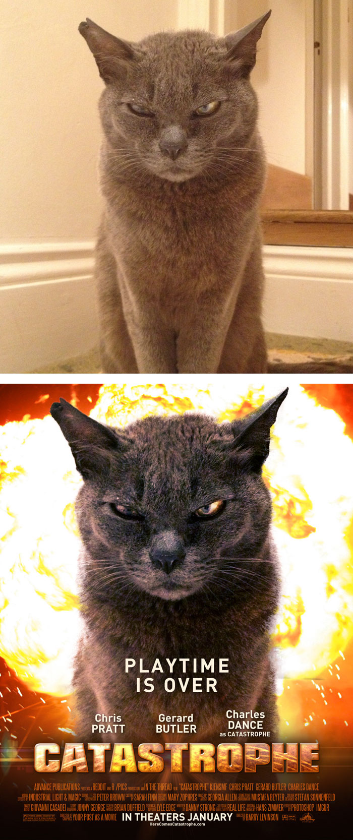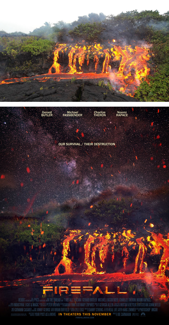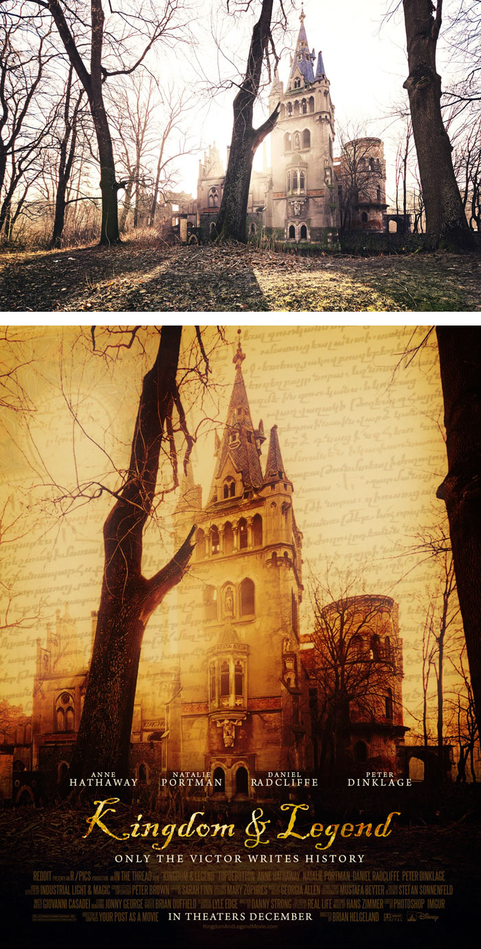 Um rapaz, usuário da rede Reddit, que infelizmente não conseguimos ter acesso ao seu perfil para poder compartilhar, teve a criativa ideia de compartilhar seu talento no Photoshop, criando pôsteres de filmes, esses cartazes de estreia, a partir de fotografias amadoras.