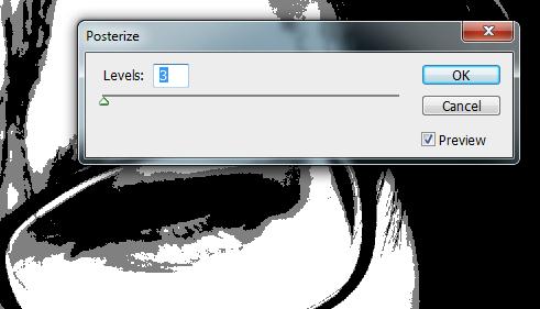 3. Após isso use a ferramenta posterize ( IMAGE > ADJUSTMENTS > POSTERIZE ) e deixe com o valor 3;