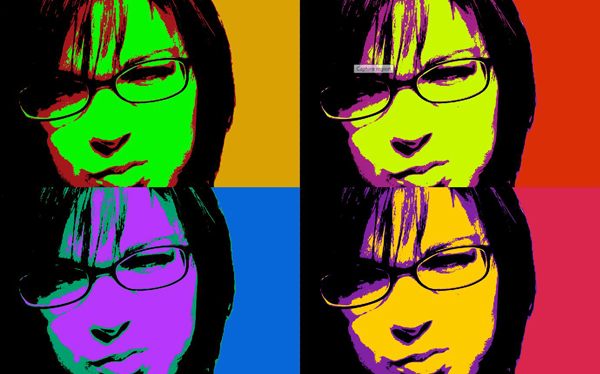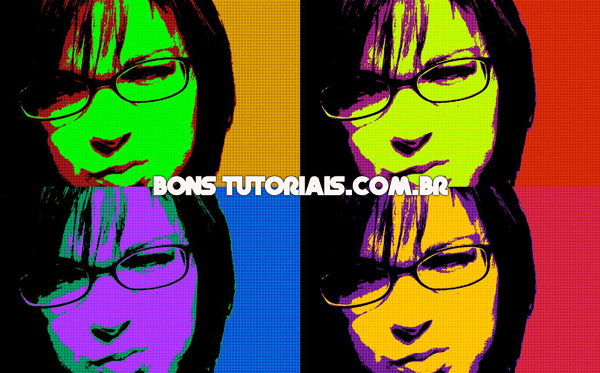 Depois de feito isso vamos dar uma carinha para nosso efeito pop art, selecione qualquer layer e vá em IMAGE > ADJUSTMENTS > HUE/SATURATION, abrirá uma caixa de diálogo, faça alterações na área HUE, aqui a imagem em inteira vai mudar a sua cor e com isso faça a alteração nas outras 3 imagens restantes.