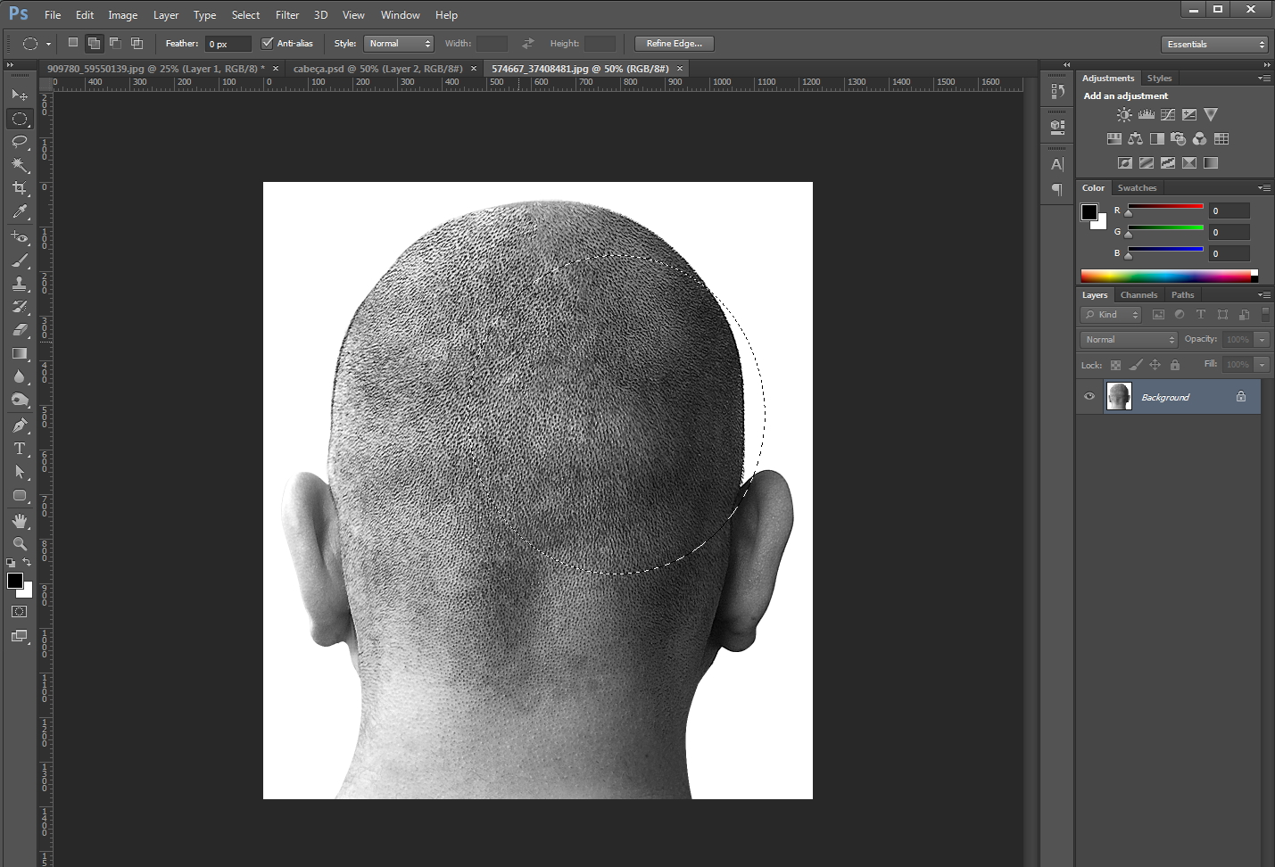 Abra a imagem da cabeça no seu Photoshop, e crie uma seleção redonda em qualquer parte do documento;