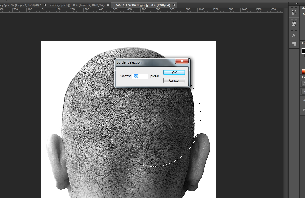 Agora vá em “SELECT > MODIFY > BORDER” e coloque o valor de 50px;