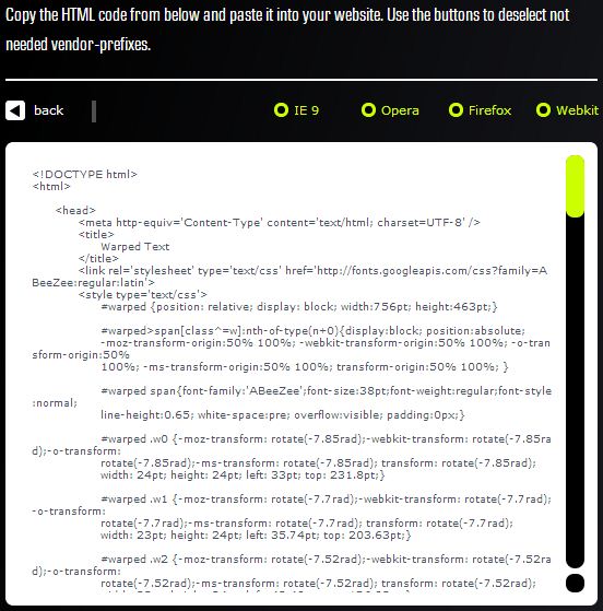 Crie textos curvados para colocar em seu web site com o CSS Warp, com este aplicativo on-line, você pode criar qualquer texto em forma curvada facilmente. Diga adeus as imagens, faça agora somente com códigos.
