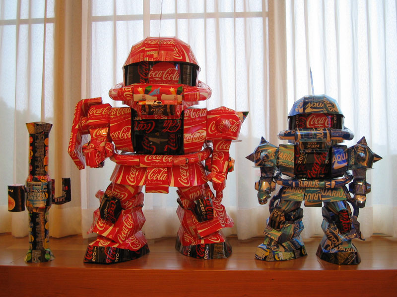 Makaon é um artista Japonês que inovou criando esculturas com latinhas de refrigerantes e outras bebidas que já conhecemos bem, não pense que são umas coisinhas básicas não, eles faz vários tipos de esculturas de personagens famosos da TV, um deles mais famosos são o Batman, Pokemon, Toy Story, Mário Bross e por ai vai.