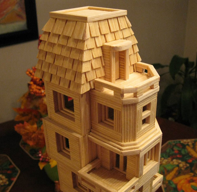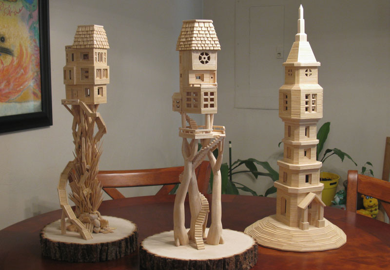 São casas e mais casas, castelos, árvores, casas em árvores, tudo o que se pode imaginar Bob já fez com palitos.