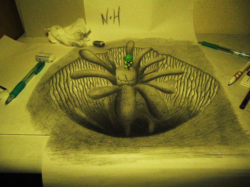 Veja a habilidade que Nagai Hideyuki tem em fazer desenhos 3d. E sua recente série de desenhos 3d ele usou somente lápis e dois papéis, isso foi o bastante para que sua obra fiasse conhecida no mundo todo.