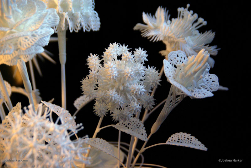 O artista e inventor Joshua Harker criou a “Mazzo di Fiori” que são flores, uma mais linda que a outra, que são impressas nessa nova tecnologia.