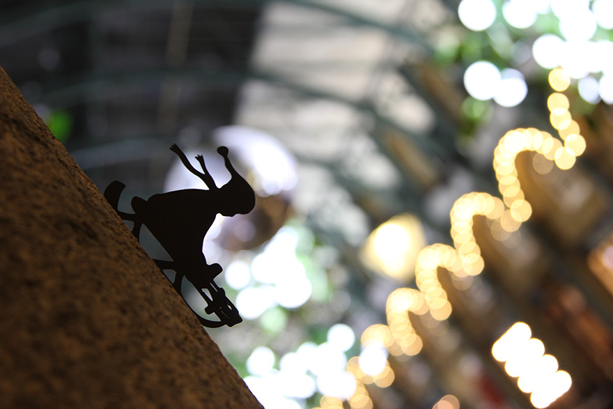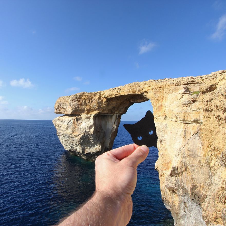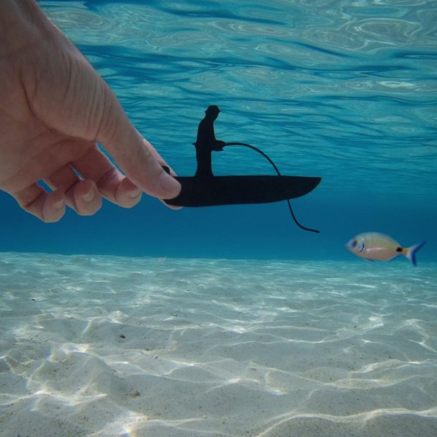 As fotografias são bem criativas e levam sempre algum personagem ou desenho feito no papel e que ao colocar em devidas posições, passa a fazer parte da paisagem.