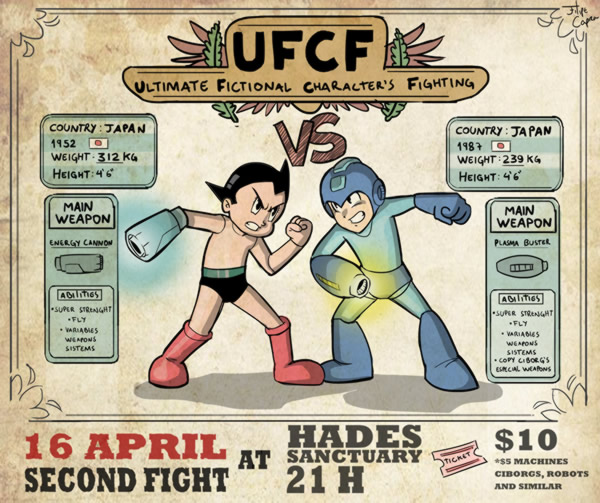 Esse cara tem uma criatividade master, olha só o que ele decidiu fazer, ele criou um campeonato de MMA somente com personagens famosos como Seu madruga, Super Homem, Mega Man e outros.