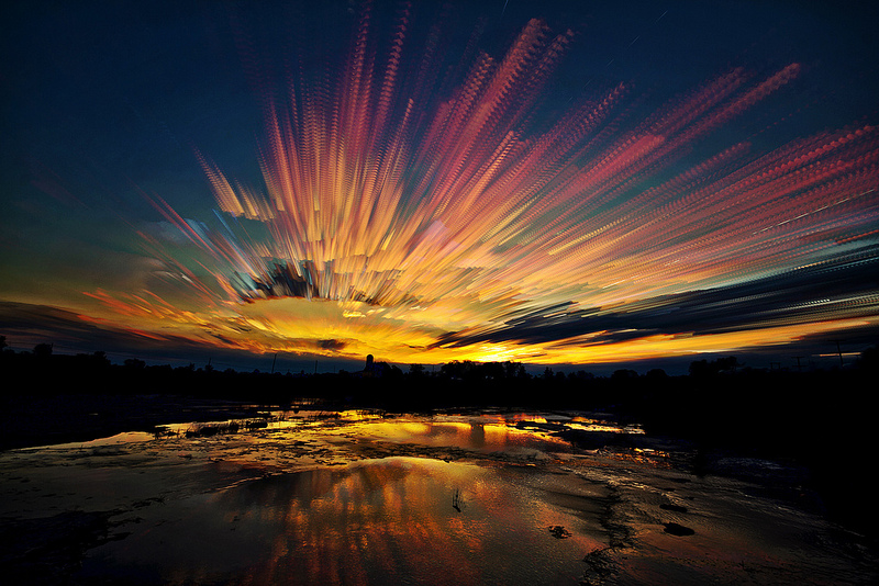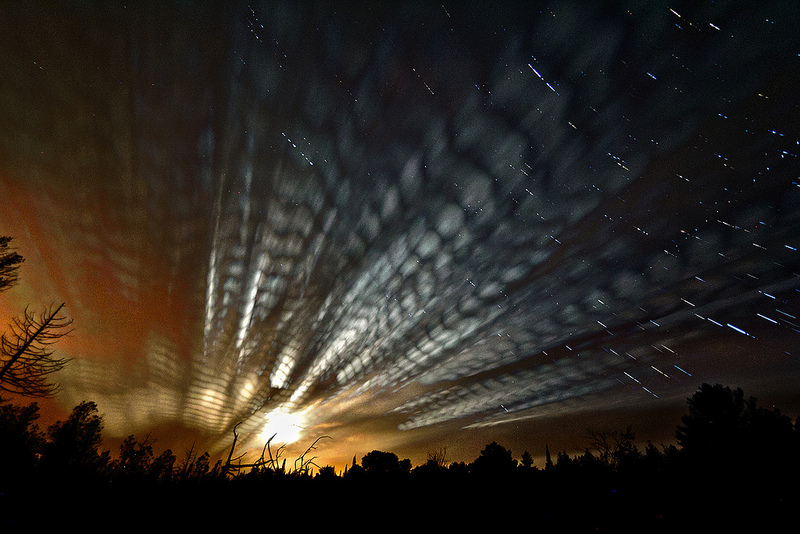 Ele tira fotografias de um certo lugar pelo menos 500 vezes e após isso ele usa alguns recursos de Blend no Photoshop e consegue um resultado de um céu como se fosse desenhado a pincel, separei algumas imagens deste grande set de fotografias para você.