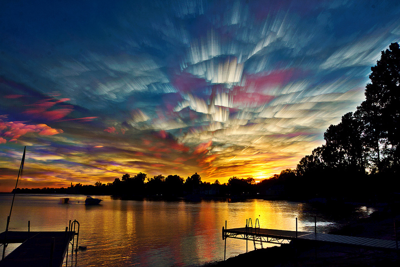 Ele tira fotografias de um certo lugar pelo menos 500 vezes e após isso ele usa alguns recursos de Blend no Photoshop e consegue um resultado de um céu como se fosse desenhado a pincel, separei algumas imagens deste grande set de fotografias para você.