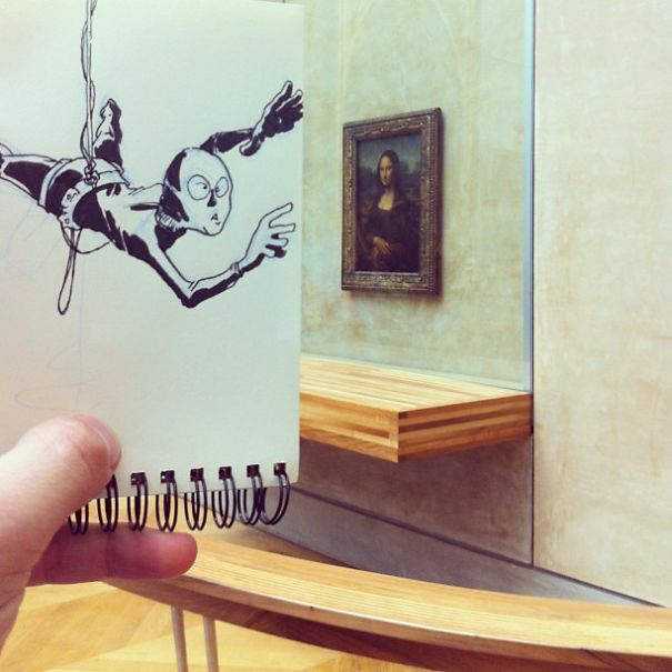 David é muito criativo e faz ilustrações fantásticas, geralmente ele costuma usar lugares atoa, que o inspiram a montar desenhos e formar novas realidades para tudo aquilo que já existe.