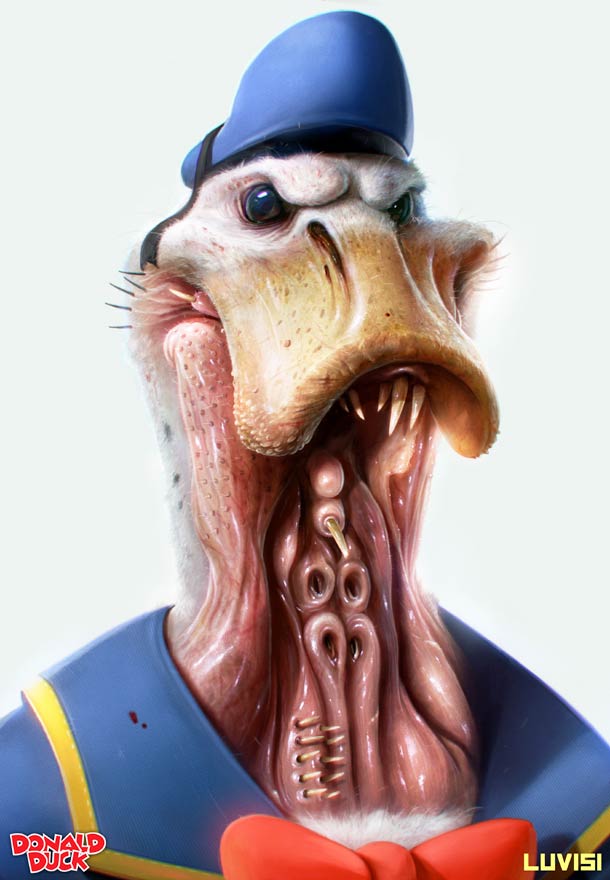 Veja esta série macabra de alguns de nossos desenhos favoritos mais vistos na nossa infância feitos pelo ilustrador Dan Luvisi.