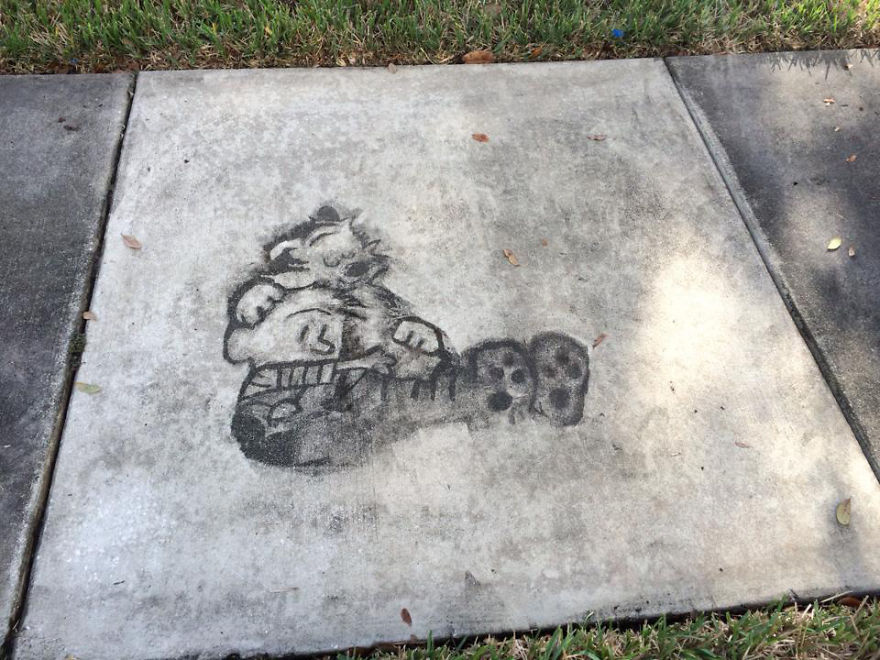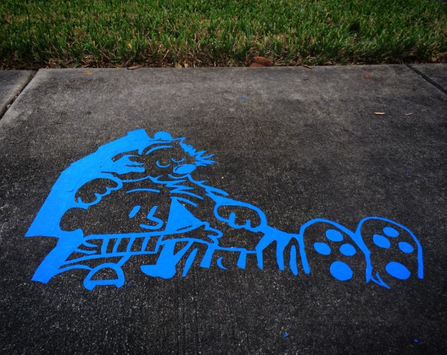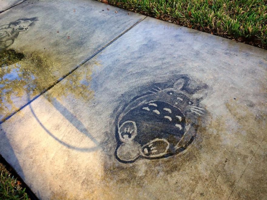 Wong limpava a calçada mas sempre deixava um espaço empoeirado com a forma de seus personagens preferidos de quando era criança, com o efeito muito legal que ficava, logo Wong começou a receber elogios de todos, por sua talento e espirito brincalhão, mas infelizmente ele não pode deixar suas ilustrações por muito tempo, o que é uma pena pois sua criatividade foi demais não acham?!