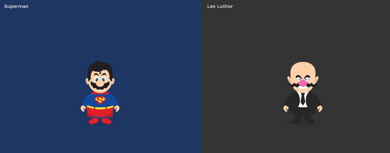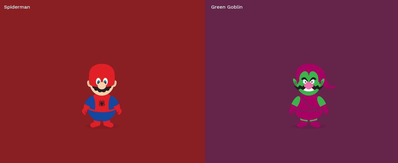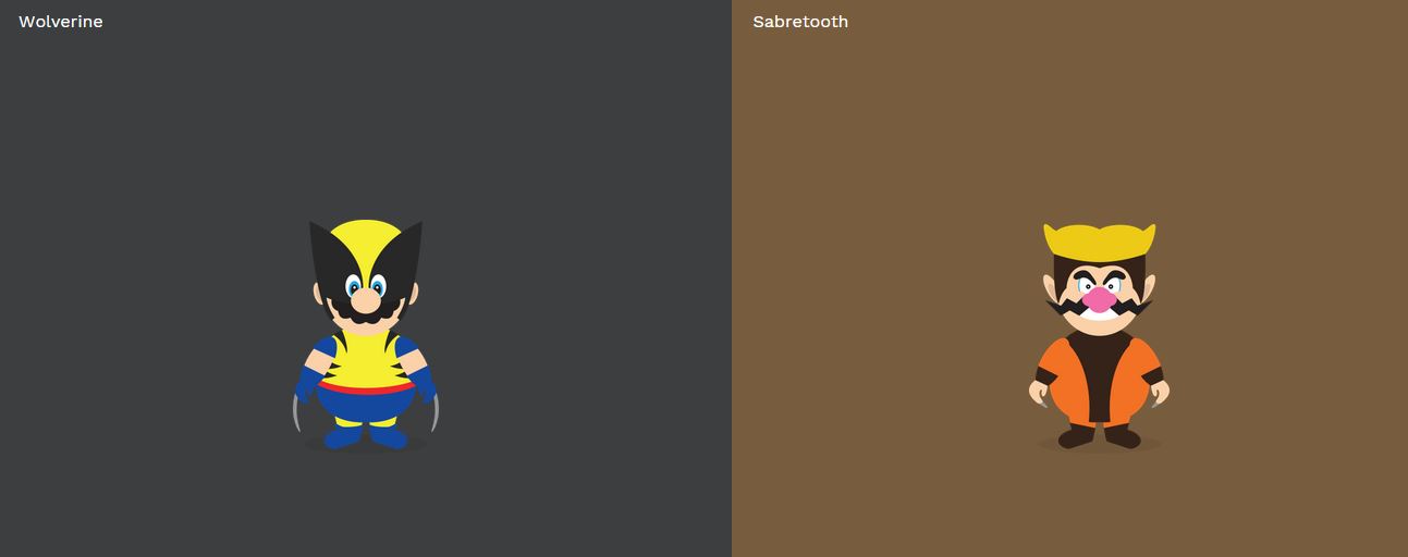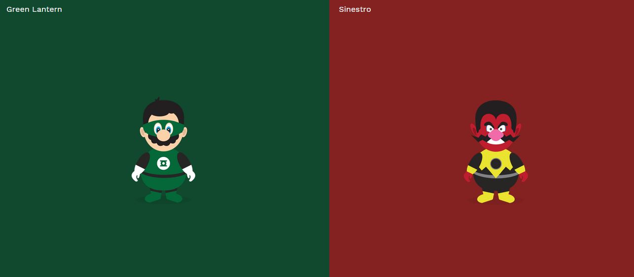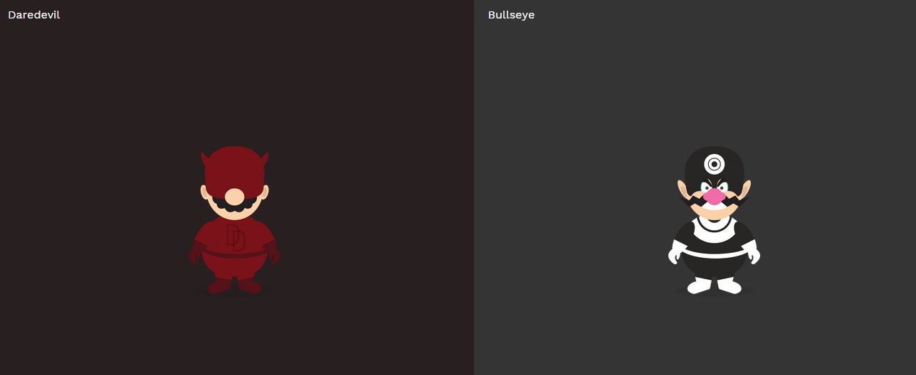 Na série intitulada “Really Super Mario vs Really super Wario” o ilustrador criou o Mário como o personagem bom ao lado de seu personagem relativo mal.