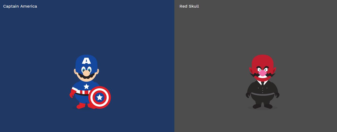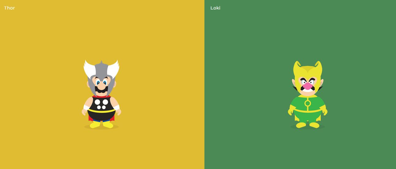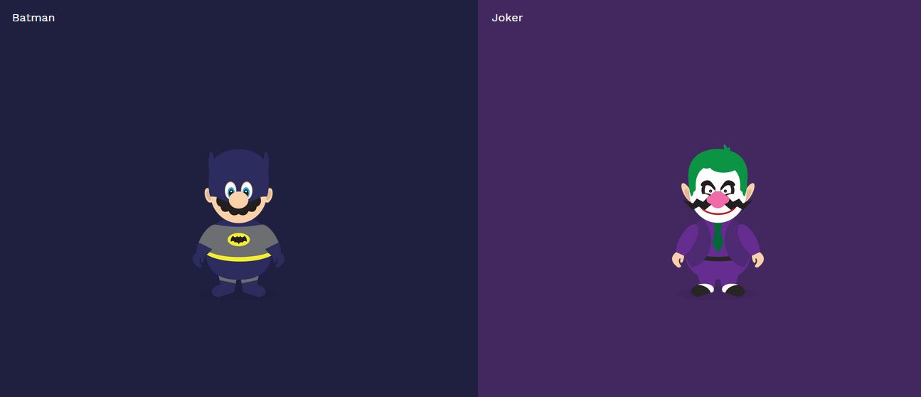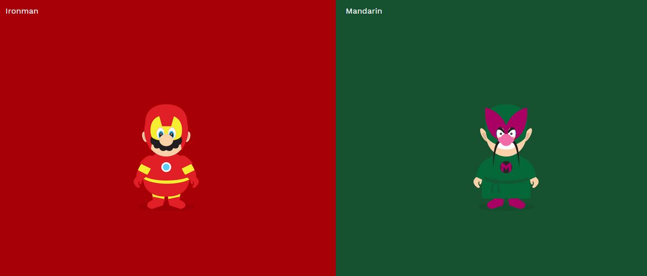 Na série intitulada “Really Super Mario vs Really super Wario” o ilustrador criou o Mário como o personagem bom ao lado de seu personagem relativo mal.