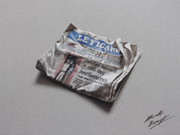 Seu trabalho é demais, ele ilustra objetos do dia a dia de uma forma tão realista que os desenhos parecem estar saindo das folhas de papel!