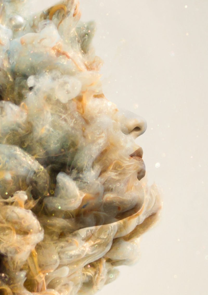 Em sua imagem de fumaça, o fotografo mescla rostos de lindas mulheres para mostrar que da destruição e do fim pode-se surgir um novo recomeço, um novo inicio.