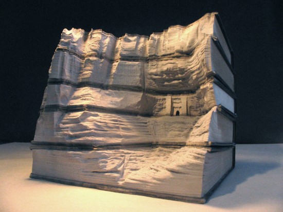 Parece até que é inacreditável mas é verdade, são todos livros, livros de verdade, esculpidos da mais forma variada possível desde montanhas, casas e canyons, esse sim é um trabalho muito bem feito e com certeza bastante difícil, os criadores destas extraordinárias esculturas você encontra no site http://www.guylaramee.com, entrando lá você pode acompanhar as novidades e novos livros esculpidos.