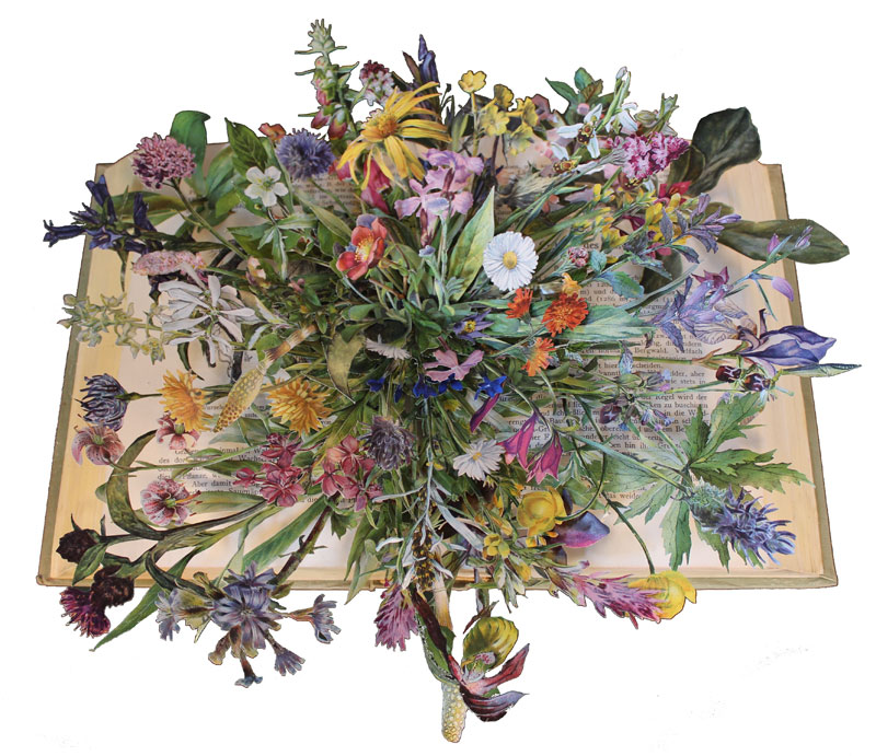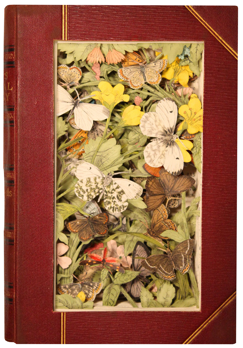 Seu trabalho além de muito bonito é também muito criativo, pois trás um novo rosto aos livros que ninguém mais lembra e suas colagens de forma 3D deixam tudo ainda mais inspirador.