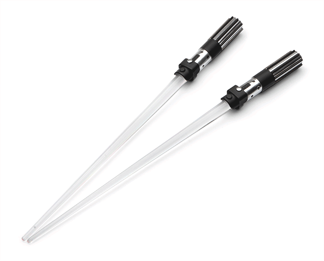 Importado do Japão os hashis imitam as armas dos protagonistas de Star Wars, e o melhor de tudo é que os pauzinhos ainda emitem luz e vão deixar a sua refeição muito mais poderosa. O produto funciona a bateria e nele contém todas as instruções de cuidado e lavagem. Na loja, os hashis poderosos custam U$15 – um pouco mais de R$30.