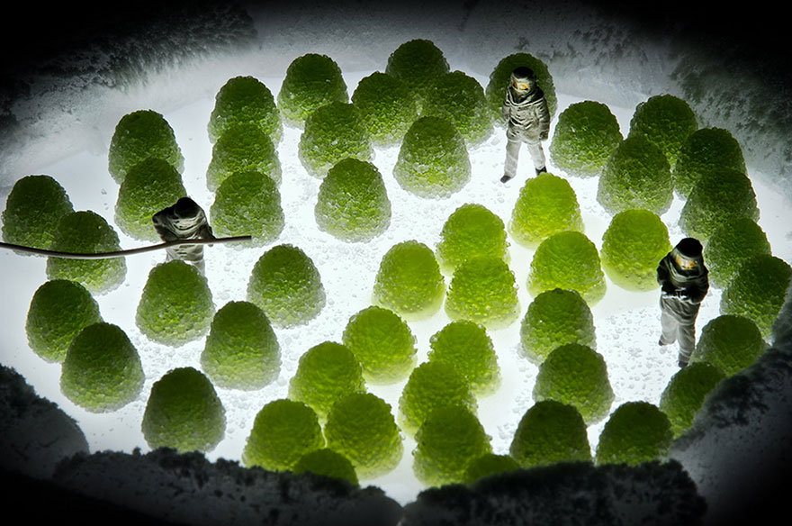 Seu trabalho lembra o trabalho de outros 2 artistas que também usam a comida como fonte de inspiração para outros mundos, menores que os nossos, aqui mesmo no BT já mostramos os trabalhos de Akiko Ida e Pierre Javelle (clique aqui se você ainda não viu o trabalho deles).