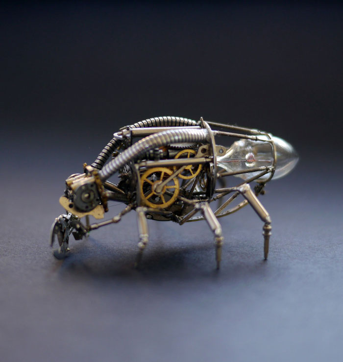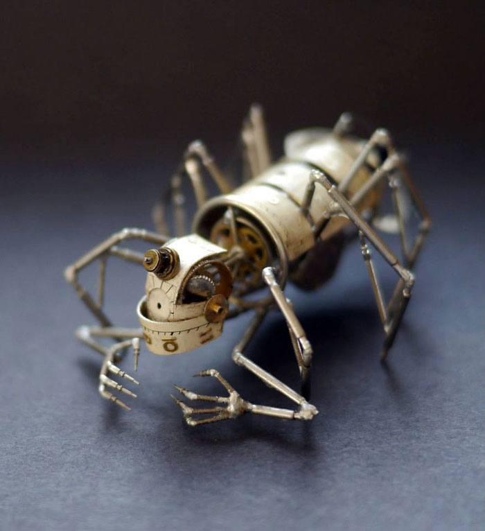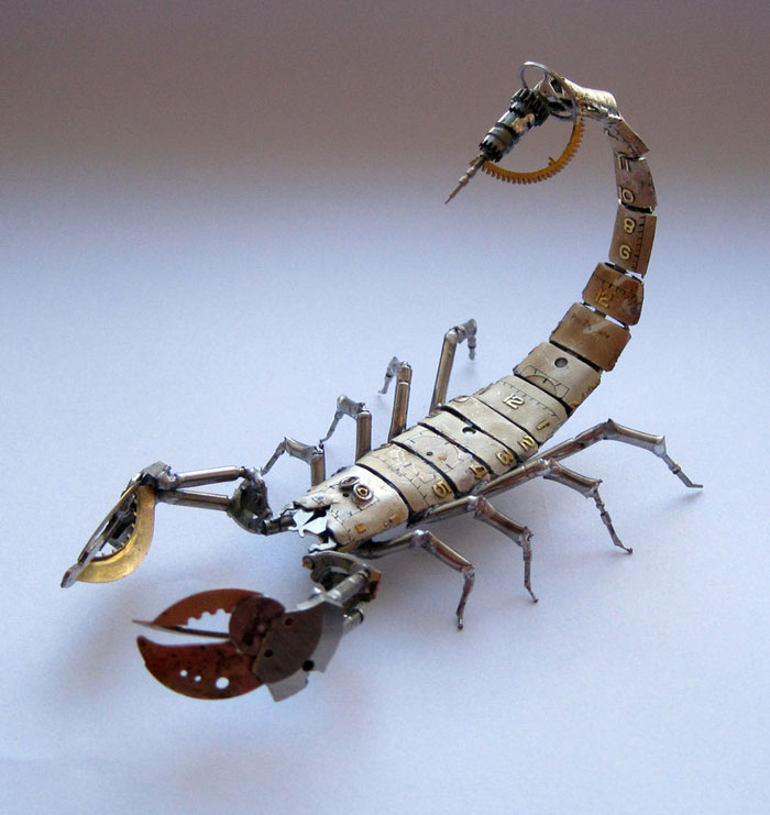 Sua paixão por ver como toda a mecânica funciona fez com que Justin começa-se a criar pequenas esculturas em vários formatos, apenas utilizando peças de relógios e outros objetos que já não funcionavam mais, dando uma vida nova a cada peça!