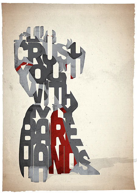 Pete Ware Criou uma coleção de pôsteres utilizando somente a tipografia, o que é mais legal em sua coleção é que ele fundiu a tipografia relacionando ao personagem que ele quer deixar em destaque, veja que criativo!