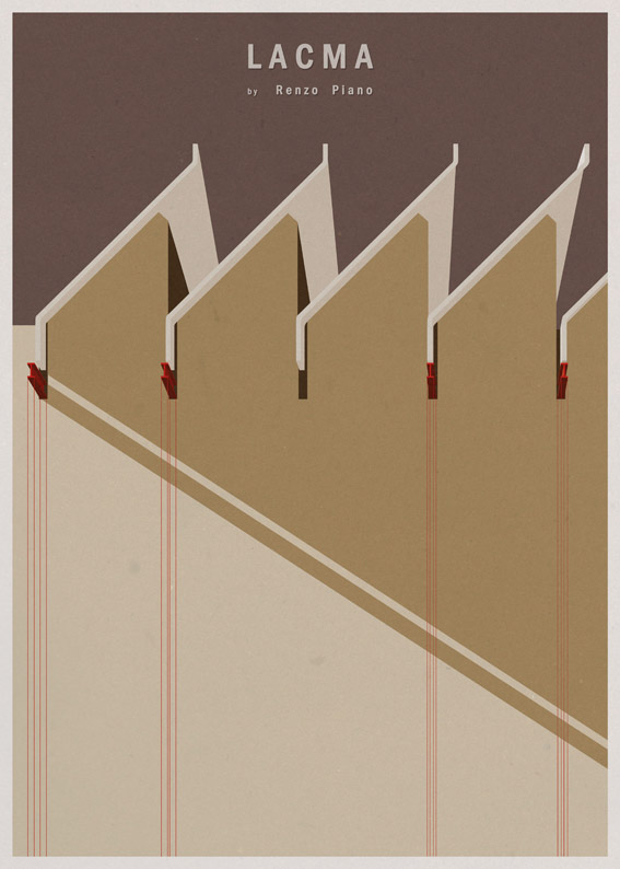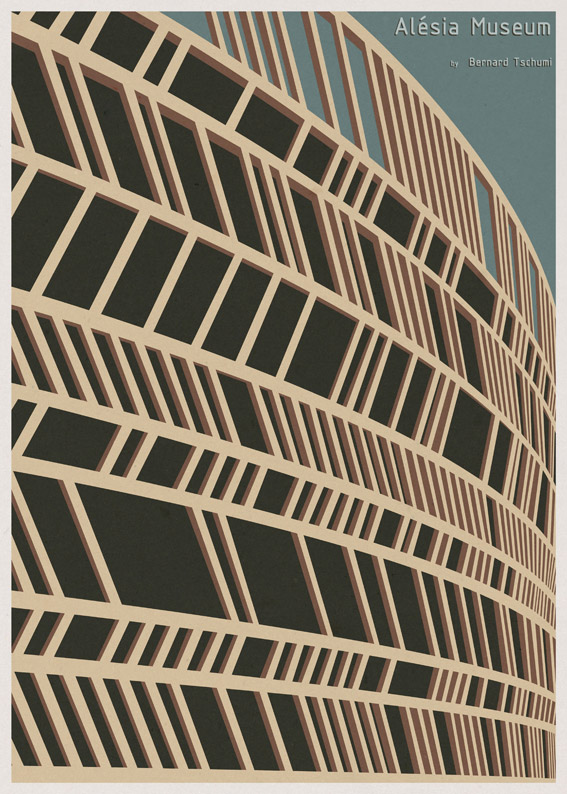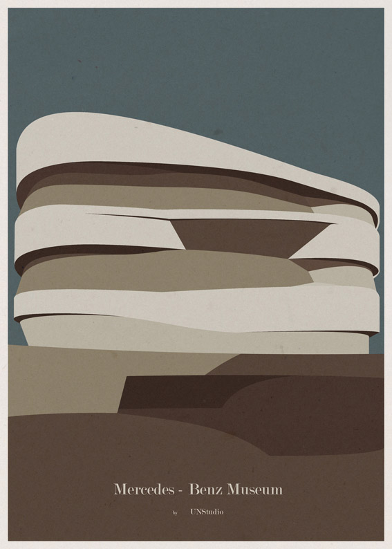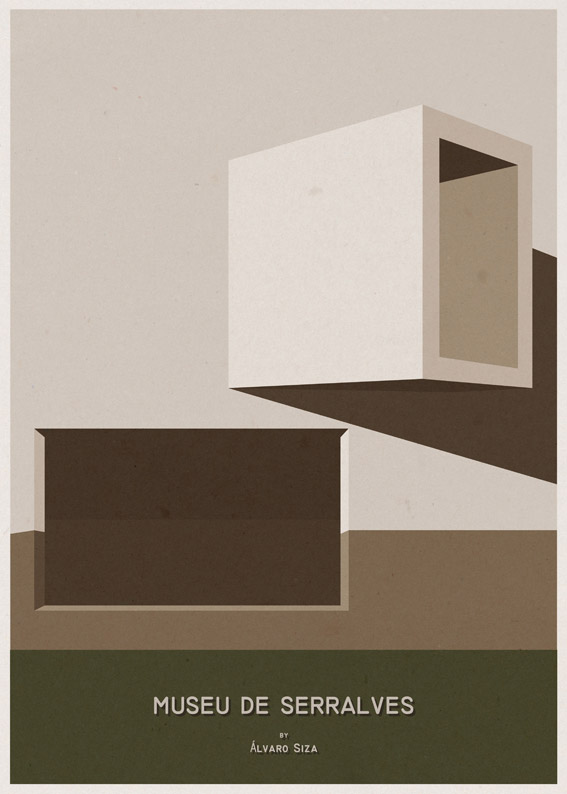 Pôsteres minimalistas de arquitetura de museus famosos