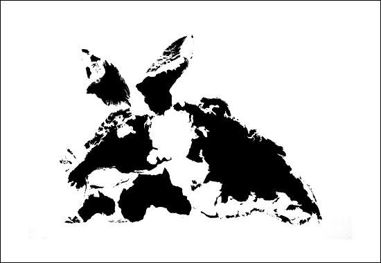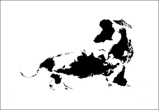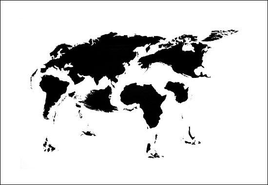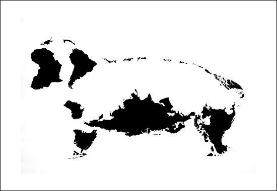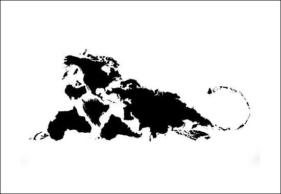 Ele usou o mapa dos continentes e até de pequenas ilhas, mas de qualquer forma o trabalho ficou animal!
