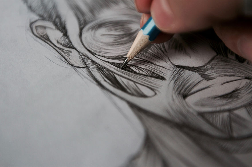 Dessa vez ele compartilha também os esboços de como faz tudo acontecer, como seria mais ou menos a união desses dois mundos, a fotografia e o desenho.