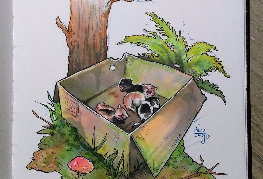 A desenhista Oliwia Kozlowska aproveitou o Inktober, um desafio que acontece todo mês de outubro para artista criarem desenhos diariamente durante todo o mês, para desenhar o seu projeto de conscientização sobre os direitos dos animais.