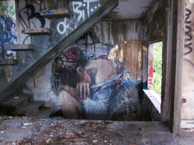 Borondo cria seus desenhos nas paredes dos prédios e lugares abandonados tudo isso para coincidir com sua arte, é um trabalho fantástico, veja a sua arte grunge que enfeitam as ruas da Espanha.