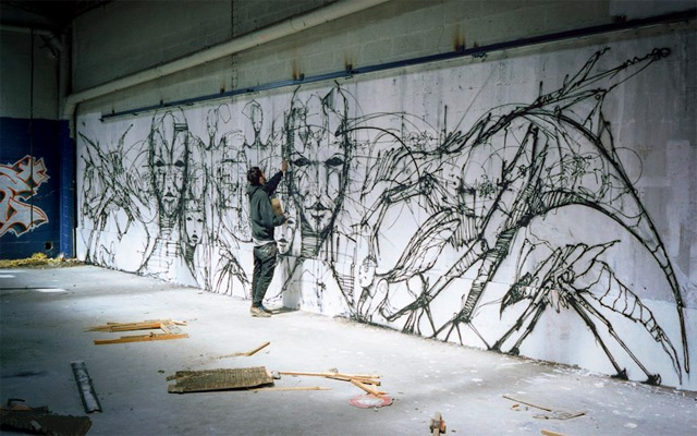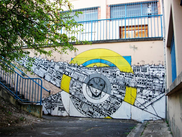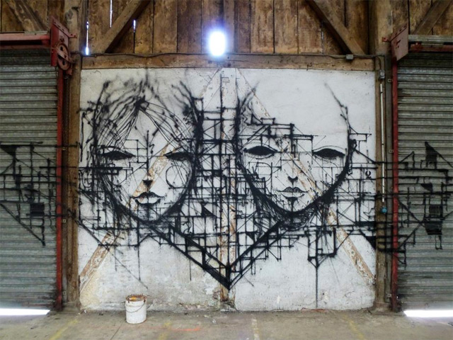 Este artista francês tem paixão em fazer seus desenhos em prédios abandonados e lugares obsoletos, ele diz que a arte que ele faz e o ambiente que ele cria são o conjunto perfeito, a arte e a arquitetura se conversam mas convenhamos, o trabalho dele é excelente!