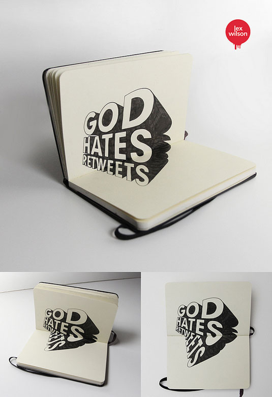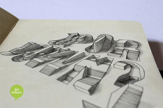 É isso mesmo que você viu, o artista Lex Wilson desenvolveu uma nova forma de apresentar seu trabalho de ilustrador, ele criou ilustrações 3D em tipografias em textos simples, não estou falando de tipografia com Bevel Emboss no Photoshop não é uma tipografia totalmente diferente!