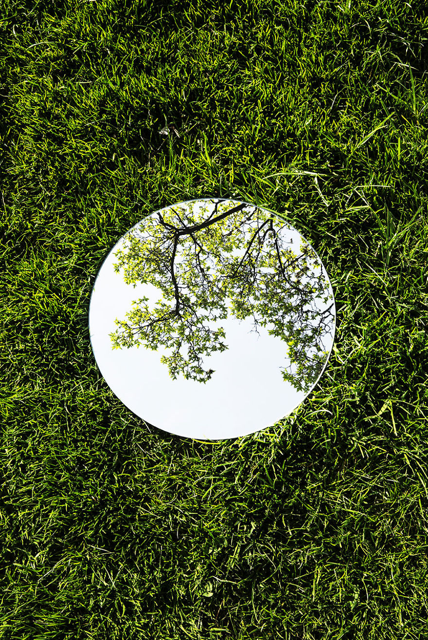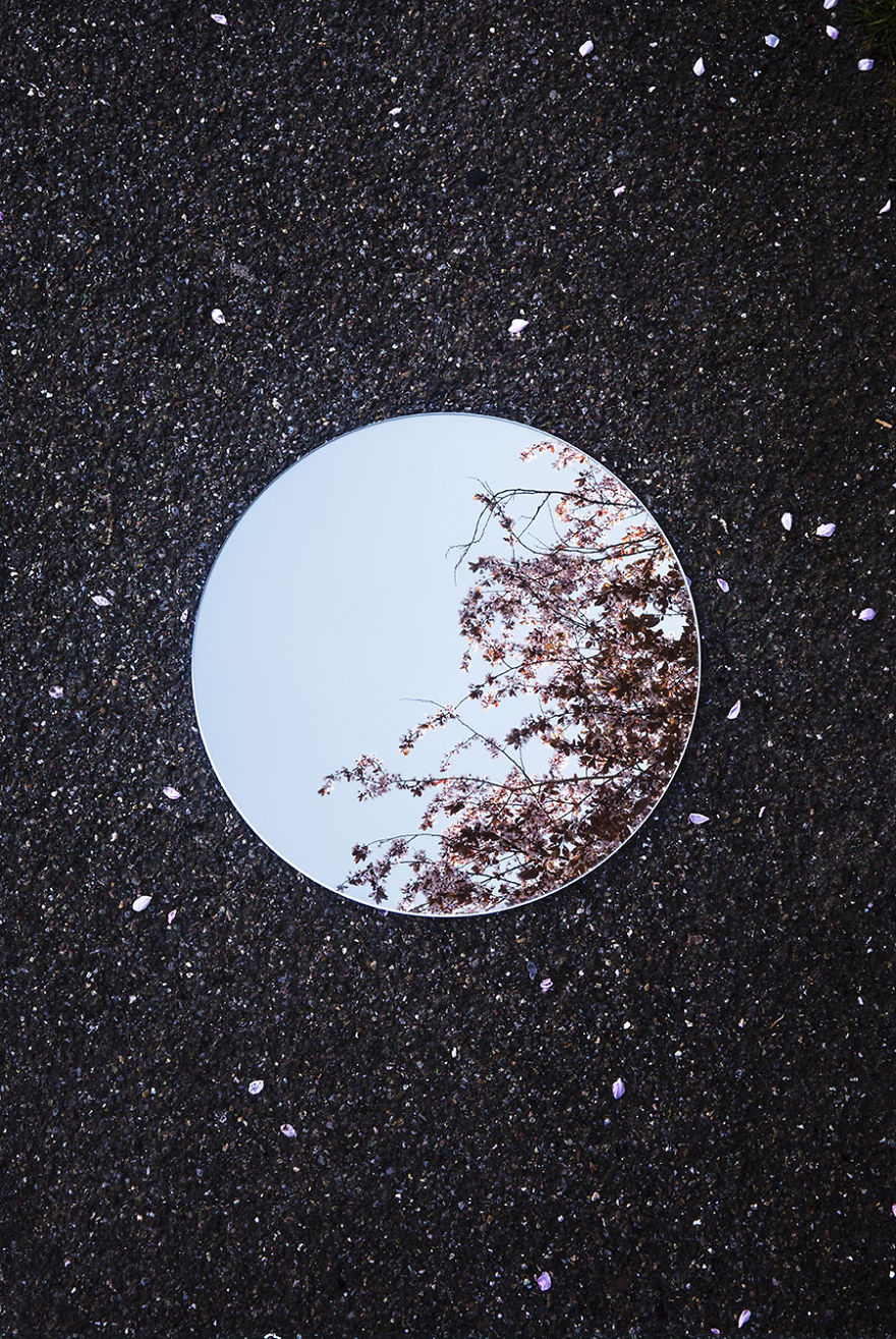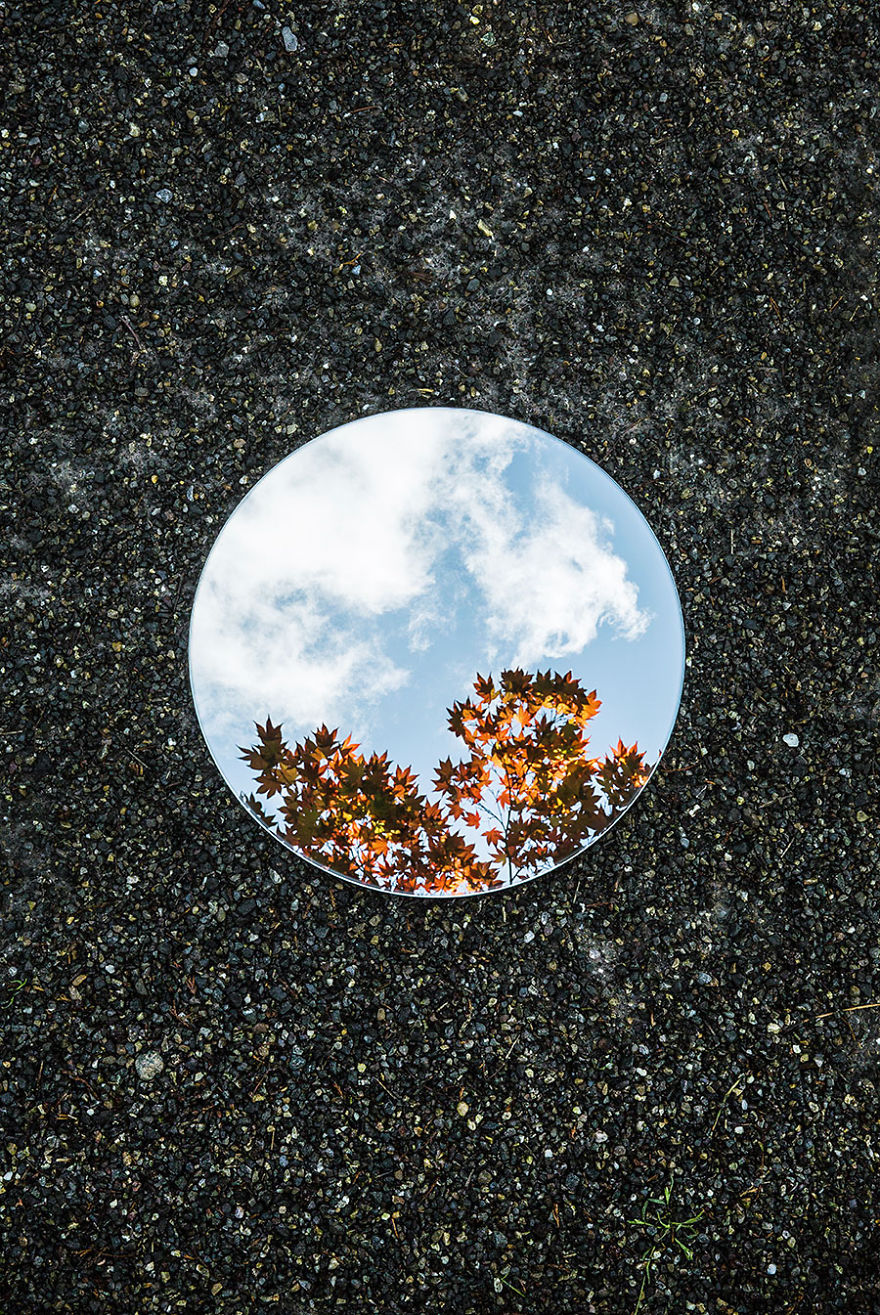 Tudo consiste em um espelho redondo colocado no chão e refletindo o céu e o que tem acima do espelho. Assim Sebastian registrou várias imagens lindas e que, mesmo simples, foi criativo e novo.