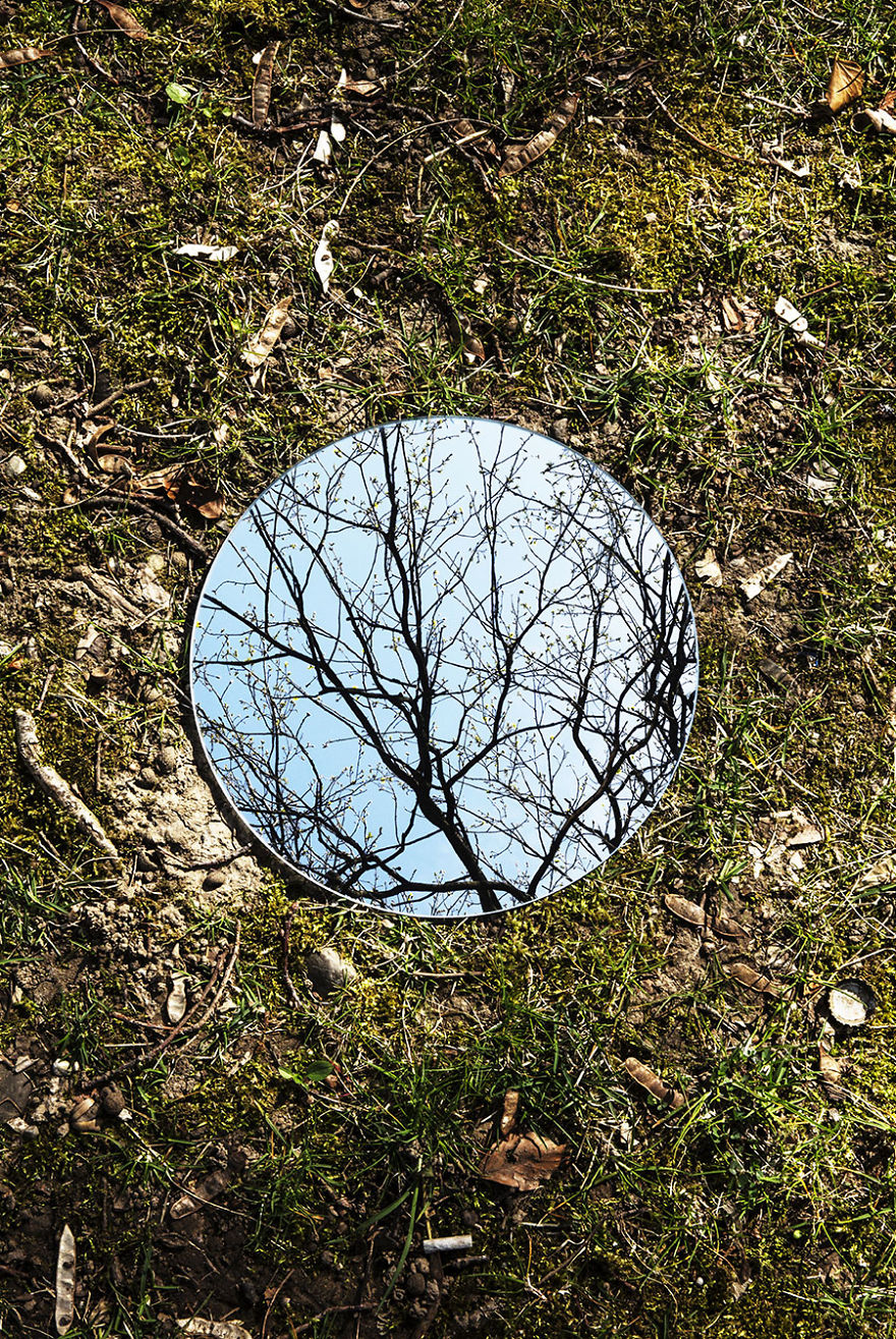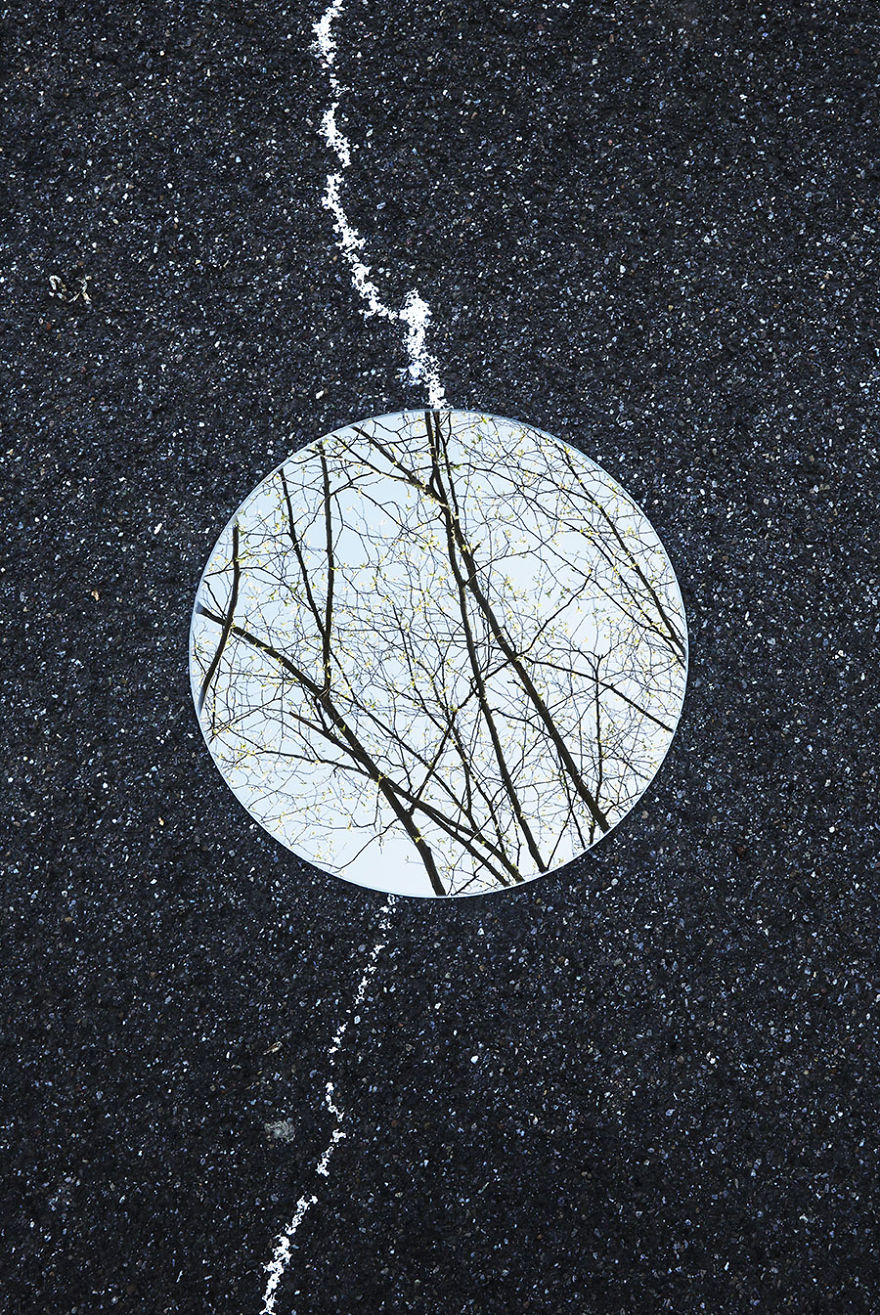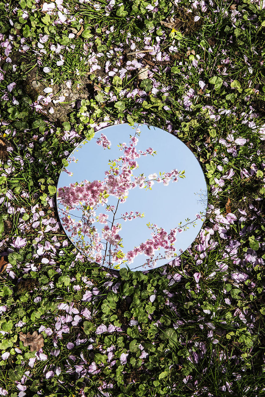 Tudo consiste em um espelho redondo colocado no chão e refletindo o céu e o que tem acima do espelho. Assim Sebastian registrou várias imagens lindas e que, mesmo simples, foi criativo e novo.