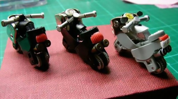 Criar motos de miniaturas com esqueiros, você acha que é possível? Não? Então olhes só o que ache pela internet e estou compartilhando com você, o usuário do youtube Tysteriskians que fez estas belas motinhas, ensina em seu vídeo como que ele fez e até se desculpa pelo áudio do vídeo, mas de qualquer forma é um belo trabalho, impressionante.